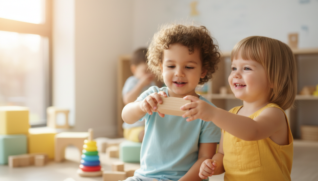 Das zweite Lebensjahr (ca. 18 bis 30 Monate) stellt ein kritisches Entwicklungsfenster für die sozialen Grundsteine Ihres Kindes dar. In dieser Phase vollzieht sich der wichtige Übergang vom rein egozentrischen Verhalten hin zur bewussten Interaktion mit Gleichaltrigen. Ohne externe Impulse fällt es Zwei-Jährigen schwer, die Welt nicht mehr nur durch sich selbst zu sehen und andere als eigenständige Personen wahrzunehmen. Jetzt werden Basis-Fähigkeiten wie das Halten von Blickkontakt, das kurzfristige Warten und die Reaktion auf die Mimik anderer etabliert. Regelmäßige Interaktion mit Gleichaltrigen ist essenziell, um grundlegende Muster wie Frustrationstoleranz, Empathie und die Fähigkeit zur Kooperation zu üben. Die Isolation von Gleichaltrigen in dieser Zeit verzögert die Entwicklung dieser lebenswichtigen sozialen Kompetenzen. Eine strukturierte Umgebung, die diese Interaktionen gezielt fördert, ist daher unerlässlich.